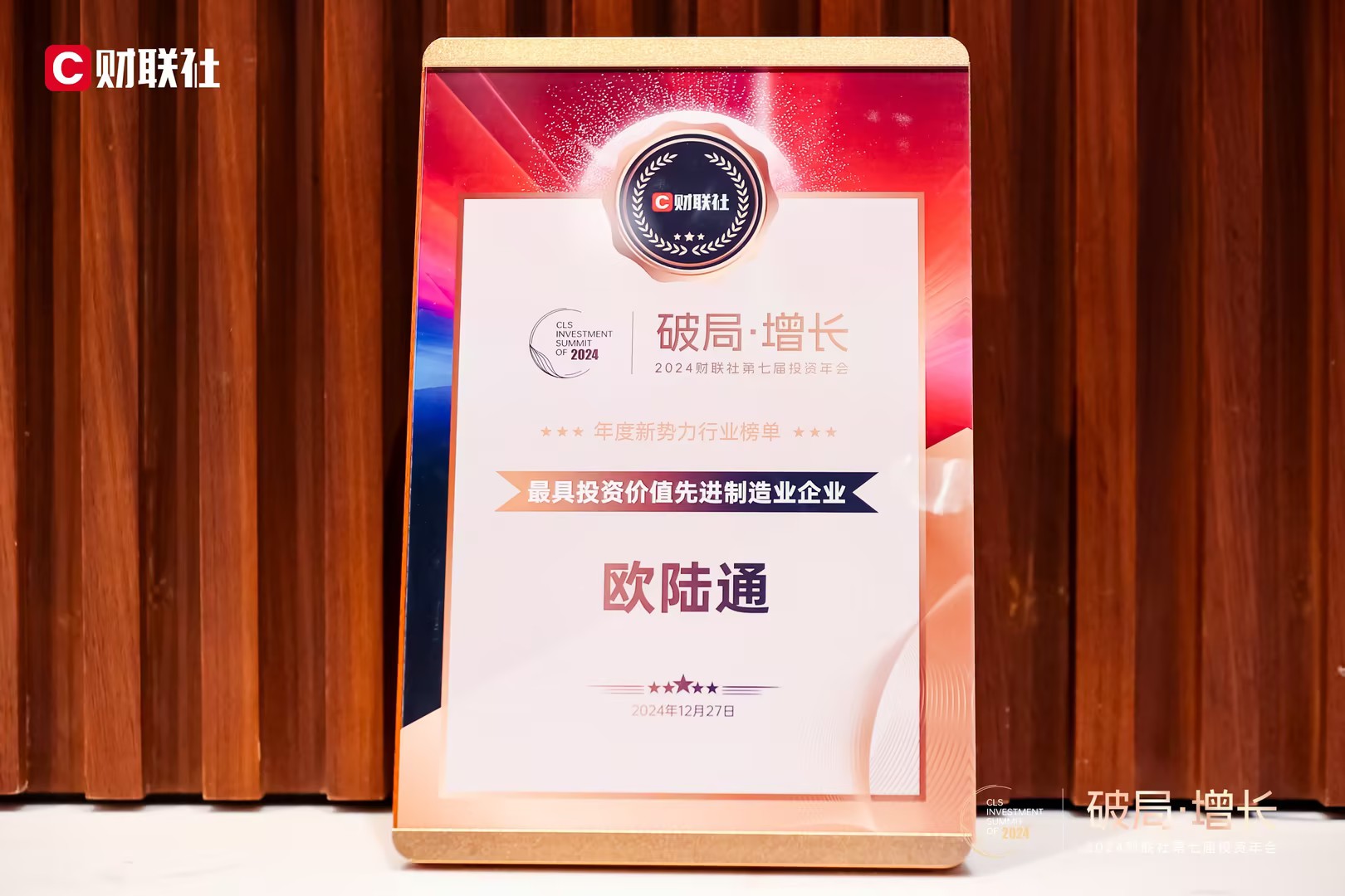 12月27日,2024財聯(lián)社第七屆投資年會在上海舉辦,邀請各界嘉賓解讀政策紅利,探討新舊動能轉(zhuǎn)換中的新機(jī)會,共同尋找經(jīng)濟(jì)發(fā)展新路徑。會上公布了“2024財聯(lián)社資本市場最具價值影響力榜單”,歐陸通獲評“最具投資價值先進(jìn)制造業(yè)企業(yè)”稱號。